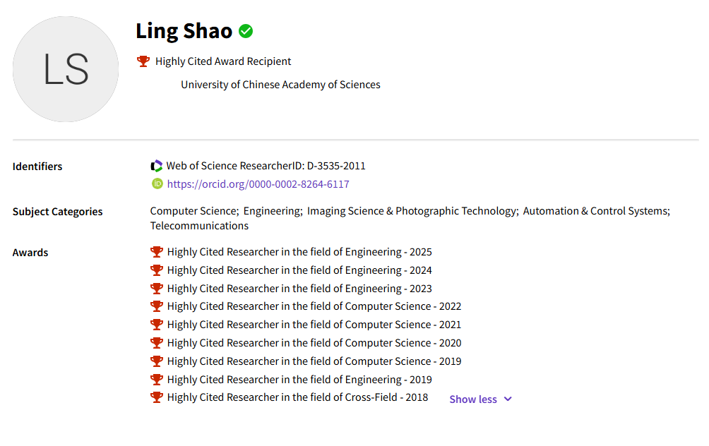 近日,特斯联Chief AI Officer and Global President邵岭博士再度获评科睿唯安(Clarivate)年度全球“高被引科学家”名单。这是其自2018年起连续第8年被授予该荣誉。