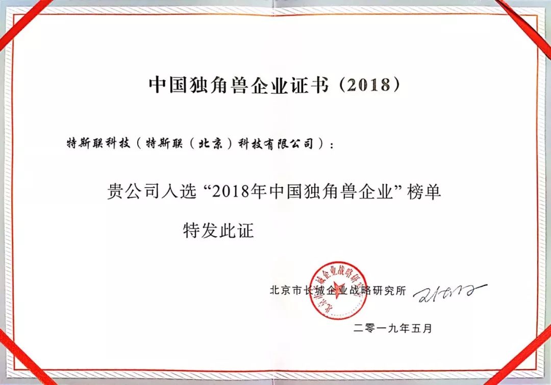 5月9日,“中国高成长企业发展论坛”在北京国际会议中心举办。长城战略咨询发布了《2018年中国独角兽企业研究报告》,权威发布2018年中国共22个领域的独角兽企业。特斯联科技入榜中国独角兽企业,同时在榜的包括蚂蚁金服、今日头条、滴滴、商汤科技等企业。